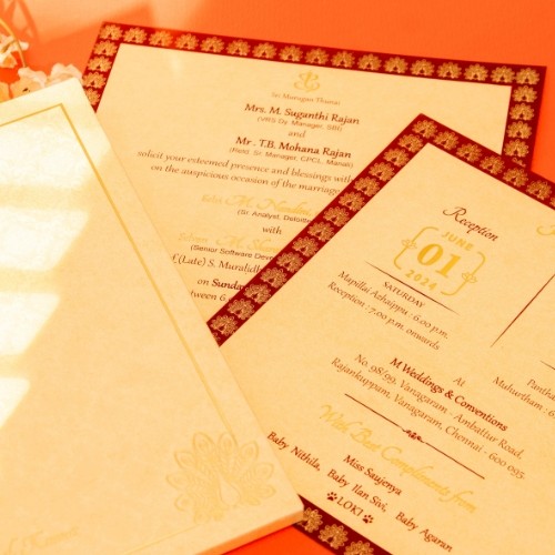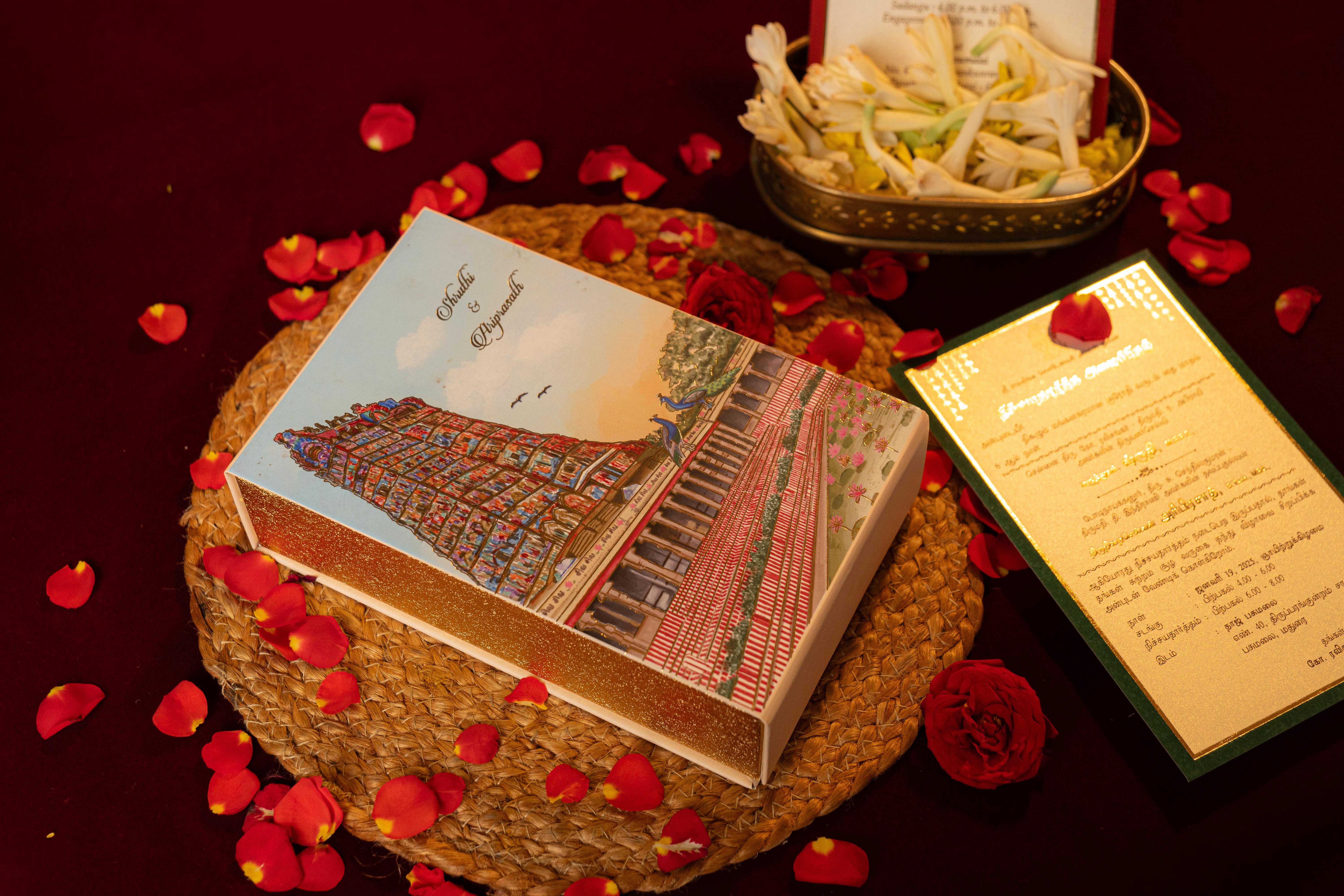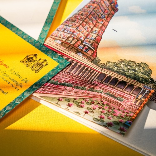 Aishwarya Invitations, led by mother-daughter duo Raji and Mahalakshmi, blends tradition with modern elegance. With 25+ years of expertise, Raji shaped the brand’s legacy, while Mahalakshmi infuses innovation and digital flair.