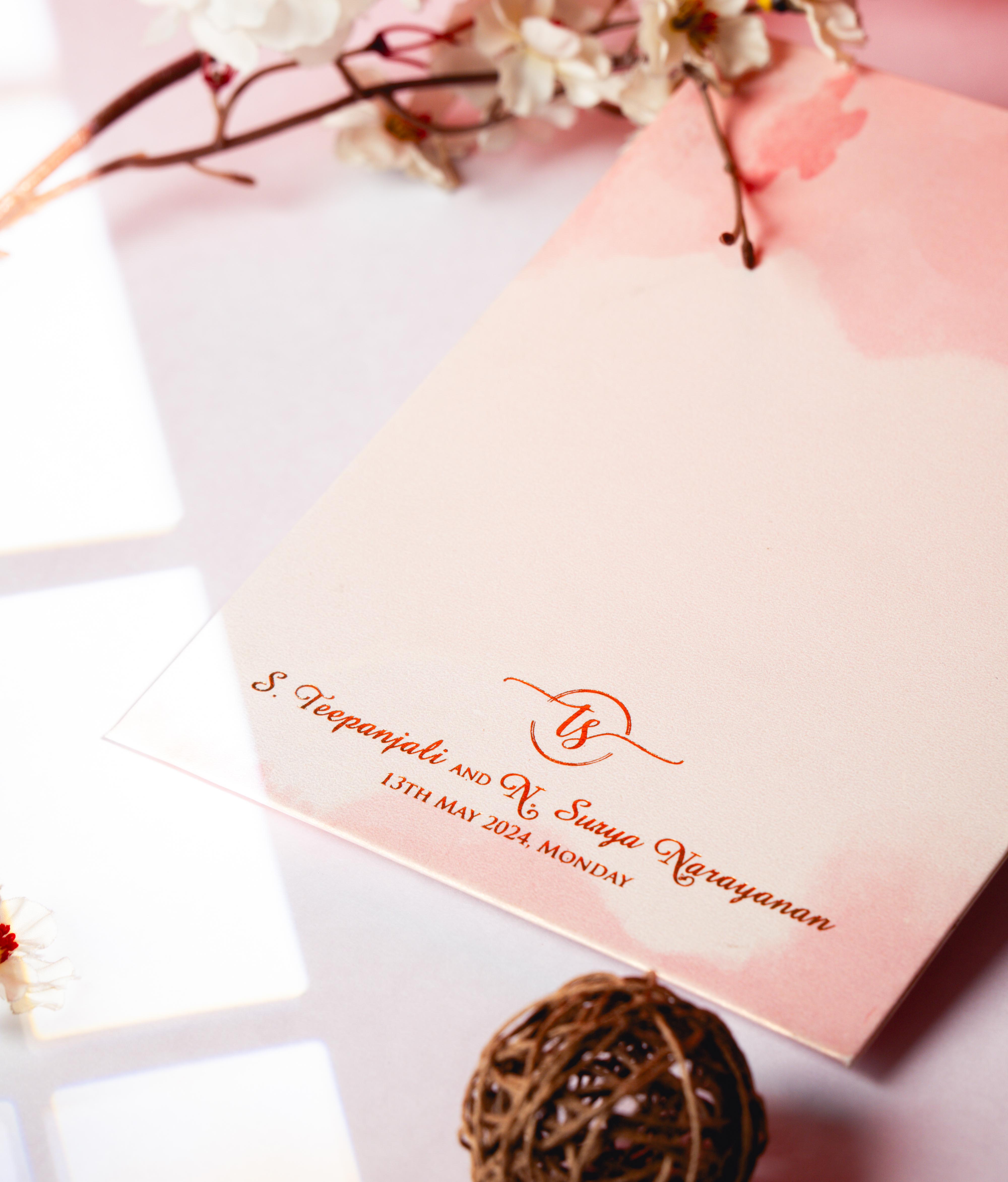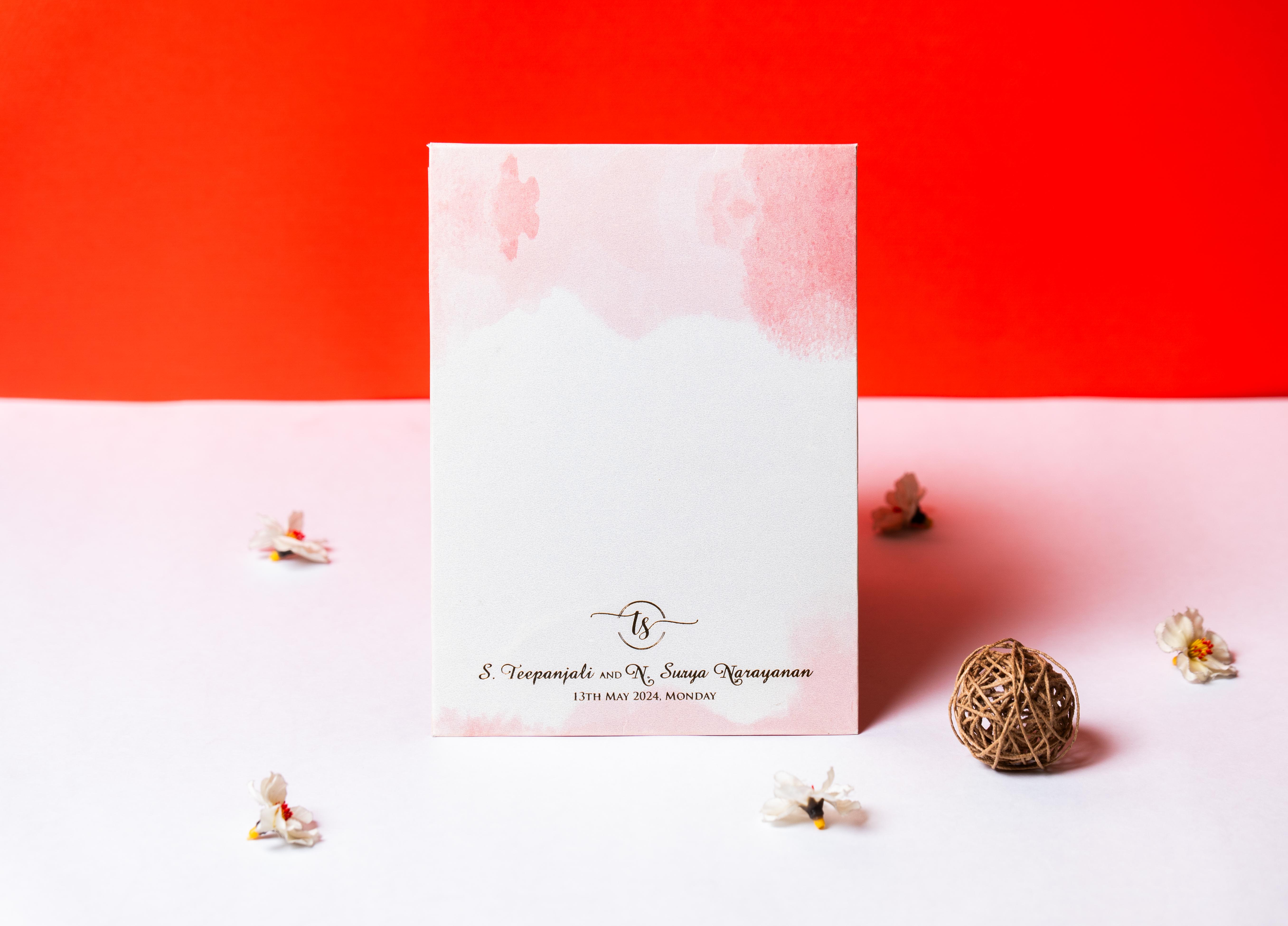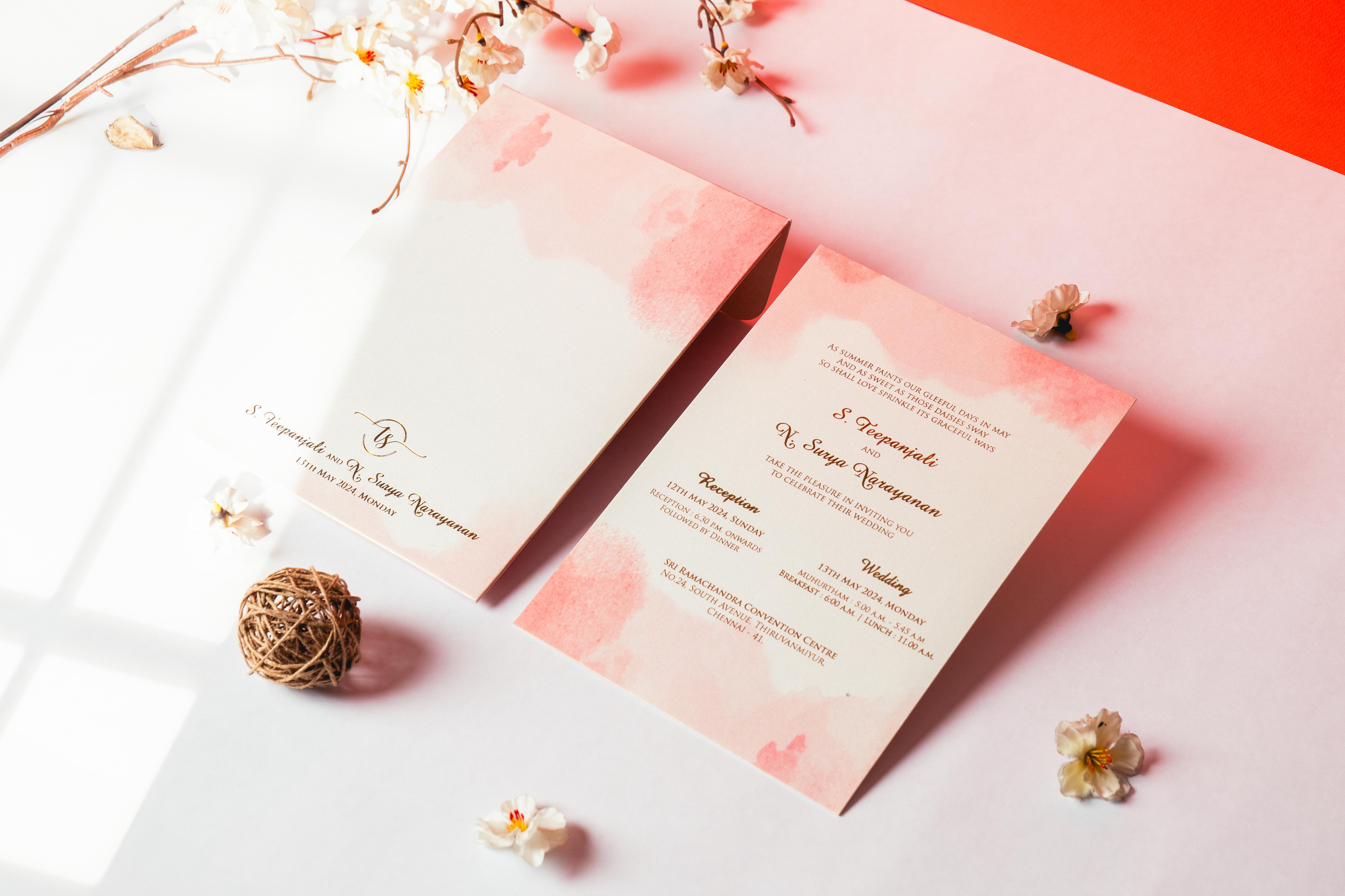 A soft and elegant wedding invitation designed with delicate blush watercolor washes and refined gold typography. This design embodies modern minimalism while adding a gentle, romantic charm. Perfect for intimate weddings and couples who admire subtle, artistic aesthetics.
